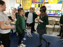 The photos show Ella( pretending to be a highwayman) walking the pathway between two sides of the class. One side was persuading her to stay a highwayman and the others were totally against her remaining a highwayman.