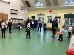 One of our PE topics this term has been badminton, we started off by using balloons to learn racket skills - easier than the shuttlecock! We have now progressed to using the shuttlecocks!